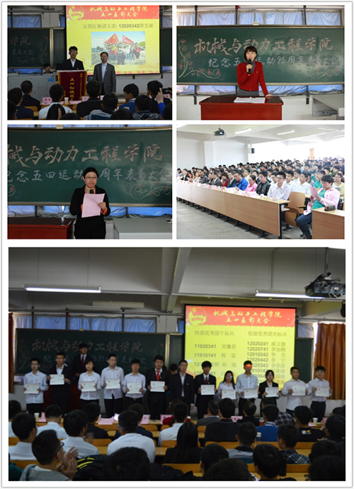 为继承和弘扬五四精神,进一步加强公司创先争优的浓厚氛围,2014年5月5日中午12:20,机械与动力工程公司纪念五四运动九十五周年表彰大会在14502教室隆重召开,大会受到了校、院领导老师的高度重视。公司党委书记郑智贞、经理王俊元、校团委副书记魏翀、公司党委副书记李秀玲、院团委书记班惠英、员工科科长王兴文、院团委副书记唐莞洋、员工科老师屈淑维,赵华、罗世通,王瑾出席本次大会。