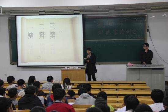 期间由往届优秀辩手程逍对本届“机械杯”和下学期的“春华杯”活动进行介绍,简述公司往届辩论赛的开展情况,并和其他三位辩手杨德明、刘佳琦和龙政宇为为大家讲解各个辩手的职能、辩论技巧和注意事项,更是激起了新生对辩论的憧憬。随后14届春华杯辩手韩红娟和刘佳琦为大家强调了比赛的台风、氛围以及一些应对冷场的策略和注意事项,为会议完美收场。